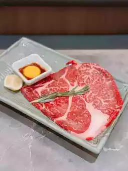 This plate of beef shoulder is very big and bright in color. After grilling, the meat is tender and rich in beef flavor. It is even more fragrant with the specially prepared egg sauce.