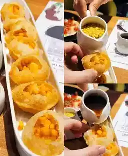 A common street snack in India, the filling is wrapped in a hollow crisp ball in the middle of the oval - Pani Puri is a dish that requires moving your own hands, because to drizzle the sauce on it, and you must eat it in one bite to experience its soul. (Good with both sauces👀)