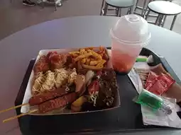 Ordered a $188 Spider-Man Beauty Platter plus $65 Giant Bee Grape Assorted Soda at the fast food restaurant. The platter is suitable for one large and two small or two large and one small. There are French fries, Taiwanese grilled sausage, fried dumplings, fried chicken nuggets and salad. The appearance is made to look like Spider-Man. cup giant bee grape assorted soda, you can add flash bulbs. The flashing bulb is shaped like Princess and the Frog's evil wizard poison bottle. Giant Bee Grape Assorted Fruit Soda Add Flash Bulbs.
