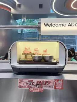 The restaurant is dominated by orange and metallic colors, going Cyber style, as soon as Heng Heng entered the restaurant, he was already amazed by the screen of the small train! QR code ordering is used here, while delivery utilizes small trains. When the food is delivered to the seats, the doors will slowly open, which looks really healing ~