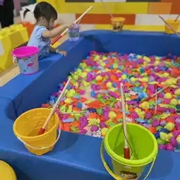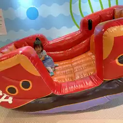 The space is huge and spacious! Floor-to-ceiling glass is super translucent ~ There are super large decaf sand pool, beach umbrella 🏖️, driving car, inflatable bouncy bed, fishing, ball pool, slide, heart engineering, rotating swing, climbing, role playing (princess, doctor, firefighter, chef, Japanese yukata, music...), Lego, toys... many things to play🙈 There are many things to do here! Brother and sister had a lot of fun! I'm so hungry that I can stop eating. I have to keep playing 😂😂