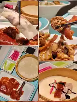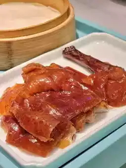 The duck with sliced skin is roasted until the skin is crispy and the meat is tender. When you bite into it, there is a bite of duck fat duck juice bursting out, with a rich duck flavor. The pie crust of the duck with sliced skin is excellent. It is a thin slice, wrapped in duck skin, duck meat, cucumber, onion and other ingredients and sauce.