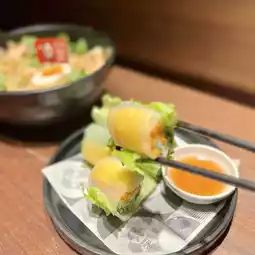 Vietnamese Tomato Crab Meat Rice Noodles: Made with tomato and crab soup, topped with crab meat, Vietnamese pork, fish slices, minced pork and lettuce. A Vietnamese noodle soup that combines seafood and meat, it has unlimited flavors and is suitable for both summer and winter.