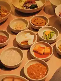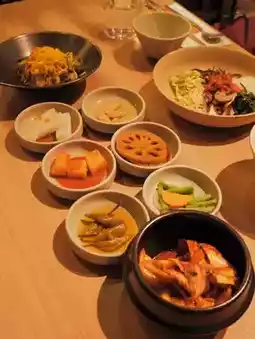 🥢 Six Korean appetizers, including lotus root slices, diced radish, beans, soy sauce chili, konjac and crispy side dishes. There is also a small pot of kimchi, which the staff carefully cut into small pieces, and the taste is particularly spicy🤪.