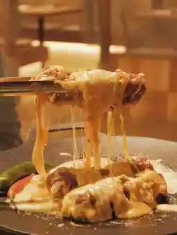 The staff will melt the cheese in front of you and evenly coat the 🍖 spare ribs with 🧀cheese sauce😍. The spare ribs🍖 are large and lightly fried beforehand. They are seasoned with a sweet and sour sauce like Kyoto ribs. Eat them with 🧀cheese🤤, which is both evil and meaty🤩.