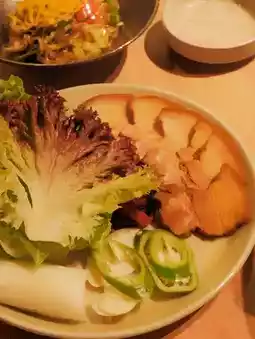 The pork belly slices are fat and lean, and the portion is quite large☺️. It is served with garlic🧄, green and red peppers🫑 and soybean paste, and then wrapped in lettuce🥬. The pork belly is soft and the lettuce is refreshing, balancing the greasy feeling of the pork belly. The taste and flavor are very rich🤤.