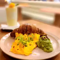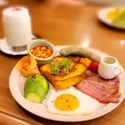 Phi all-day breakfast ~ The food is very rich, including smoked salmon, avocado, sausage, beans in tomato sauce, bacon, mushrooms and fried eggs. The taste is both salty and sweet, very satisfying ~