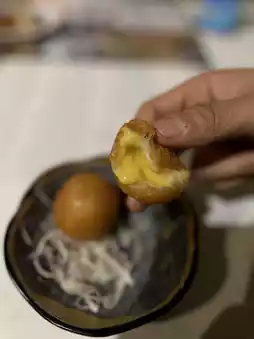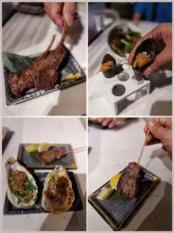 Next we ordered some cooked food and skewers to try. The cooked food includes fried eel balls with ginger and scallions, drunken abalone with Huadiao wine, curry soft-shell crab, etc., all of which are very delicious. I think the most delicious dish is the fried eel balls with ginger and scallions. The eel balls are firm and the ginger and scallions have a rich flavor, which goes well with rice. The skewers include beef tongue, lamb saddle, flounder, pineapple, etc., all of which are grilled very fragrantly. My favorite is the beef tongue, which is very tender and juicy, and adds a little lemon juice to make it more delicious.