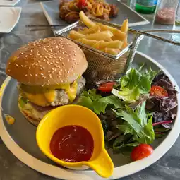 This is a popular recommended dish, it's true!! ️The size of the burger is really big😍 It almost takes two hands to hold the bun. The half-melted cheese🧀 is really eye-catching, the chicken steak is very thick, there is juice when you bite it💦 very Juicy! And there is also half an avocado filling🥑 Every bite is very satisfying🤤 In addition, it also comes with french fries, salad, the fries are thick, with a little salt seasoning, over the craving! Salad plays normally, as an appetizer 🥰