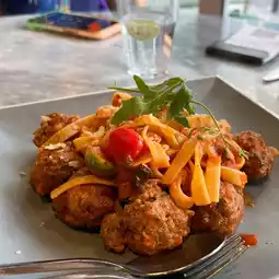The wide noodles are super juicy, each noodle is dipped in tomato puree, sour and very appetizing 😝 And the meatballs are very rich, large 👍🏻 wide noodles on top of a little Parmesan cheese, the overall taste rich. Although the portion of wide noodles is exquisite, suitable for ladies to eat🙊