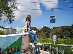 Take the cable car, which is considered one of the ten best cable cars in the world and the best double-track cable car in Asia. The total distance is over 5.7 kilometers. Let's try the Crystal Plus (Crystal +) transparent cable car. The floor is transparent. You can see the view almost all around. What do you do when you go up to Ngong Ping??
