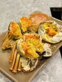 🦀 Let’s first introduce the main character, the hairy crab. Each person can order two hairy crabs each time, and can order more unlimited times within a limited time. As it is in season, both male and female crabs are of high quality. The crab meat is in a roe-filled state. When you open the crab shell, the golden crab roe is overflowing and it tastes sweet. The crab roe is sweet and fragrant, the meat is fresh and sweet, and the white crab roe is sticky and dense, which is very satisfying.