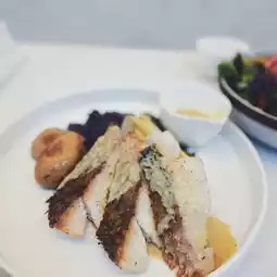 The herring meat is rather firm, the fish skin is fried crispy, very tasty, the overall meat taste fresh, with sweet green curry sauce more rich layers, sweet and spicy quite appetizing side dishes have potatoes, broccoli and baby cabbage, does not feel particularly match and boiled vegetables taste general.