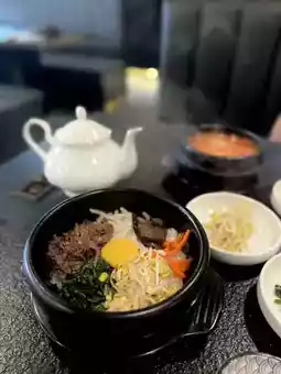 Also, I tried the stone pot bibimbap with spicy sauce. The stone pot bibimbap is hot, the rice grains are fluffy and chewy, and the spicy sauce enhances the taste.
