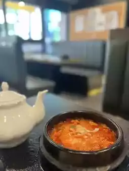 I tried the seafood tofu soup, which contained a shrimp, a mussel and a little cuttlefish, as well as tofu and eggs. The soup is spicy, and the freshness of the seafood is well preserved, which makes the soup richer.