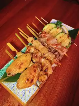 There are many choices of skewers 🤗 I ordered 🐥 seven-mile skewers, chicken thigh meat skewers, chicken heart 🐣 pork neck and chicken wings, chicken leg root 😊 also grilled sweet potato and jade melon skewers 👍