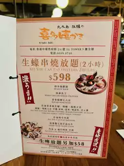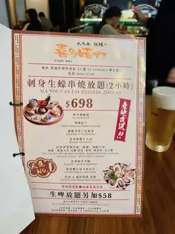 Friends birthday want to eat oysters 🦪 tonight booked Central Hitohi Oyster House Japanese Oyster All-You-Can-Eat😊 The restaurant provides picture 498/598/698 three price points two hours all-you-can-eat non-alcoholic drinks all-you-can-eat option🤩 We chose the middle 598 package😬 And like to drink friends can add $ 58 Sapporo beer all you can drink 🍻