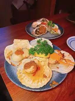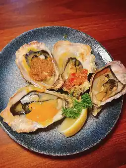 All-you-can-eat steamed oysters and sashimi 🐚 Steamed oysters are very emphasis on fire 🤭 The oysters are still full of oyster juice not dry 😬 Grilled sashimi is relatively dry but fresh ☺️ The restaurant also offers several sauce options 🤗 We like the original or garlic flavor to improve the freshness of the oysters 👍