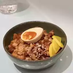The braised meat is soft and tasty and goes well with the soft and sticky rice😃