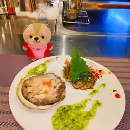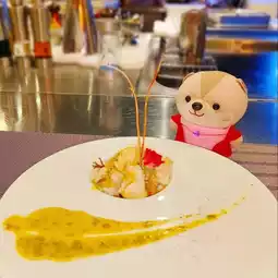 We used whole South African abalone, which is very attractive in appearance🤤. Abalone has thick meat and a refreshing and fresh taste😍. This one is served with crab meat and seaweed sauce, abalone liver sauce, basil leaves and salmon roe. You can choose different flavors according to your preference.