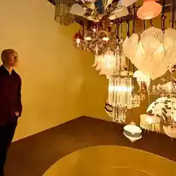 The site-specific installation work "Tears of Time" created by visual artist Liang Zhihe leads the audience to explore the traces of the passage of time. He collected old Venetian glass lamps that were used in various homes and places in Italy from the 19th to the 20th century, and used the light transmitted by them, combined with sound effects recorded from the sounds he collected in Venice in September this year, to create an effect in which the lights seem to move with the sound of waves hitting the Murano pier, forming an experience of the intersection of time and space.