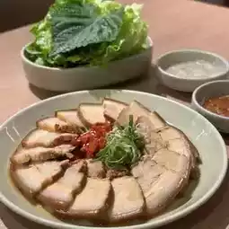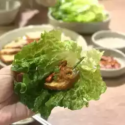 The white cut meat is arranged neatly, the portion is quite large, the meat is fat and lean, soft and tender, used to sandwich fresh lettuce and wrapped rice sauce, can remove the greasiness, but also more crispy taste