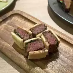 There are 4 pieces in total, each piece of Wagyu is very thick, the meat is pink and tender color, the outer layer has been lightly fried, eat with a crispy texture, with toasted very crispy toast sandwiched together, rich taste