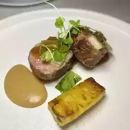 This acorn black hair pork rib eye, is the most tender and best part of the pig 🤤 called it pork neutral beef 👍🏻 taste very tender and soft, served with pineapple to eat, reduce the greasiness.