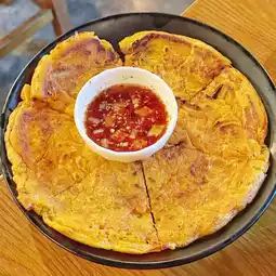 🥬Kimchi Pizza🫓 The portion is full, the taste is fresh and sweet🤤 Not too spicy.