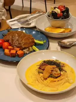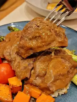 For the main course, I ordered the pasta, the slow-cooked beef cheek meat was very soft and fragrant, the rice was cooked just right, not too soft or too hard, and there were grilled asparagus and green melon as side dishes.