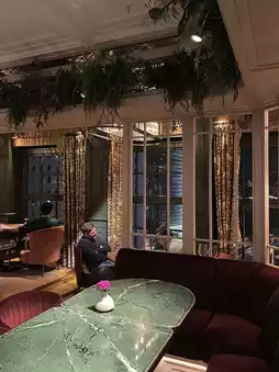 The restaurant's decoration is gorgeous and elegant, with emerald green as the main color 💚