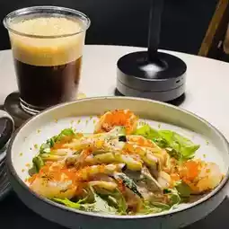 Crab seed jumbo scallop spaghetti, large scallops, fried until the outside and inside still maintain sashimi-grade quality, the sauce is very Creamy delicious, enveloping each strip of spaghetti, with crab seeds more delicious