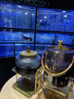 The restaurant has a gorgeous environment, the lighting is dim and stylish. I thought I was going to eat Western food. Near the sauce area, there is a large fish tank with no shortage of high-quality fresh seafood🦞. The three tables near the door have floor-to-ceiling glass views of the outdoor scenery. The restaurant has many screens to create privacy and make some enclosures, especially suitable for corporate guest gatherings.