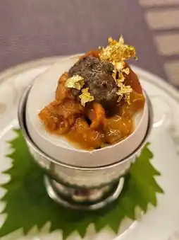 🦀🍳Crab Meat Seaweed Truffle Poached Egg: Truffle aroma plus seaweed and crab meat, on the melting poached egg, egg flavor!