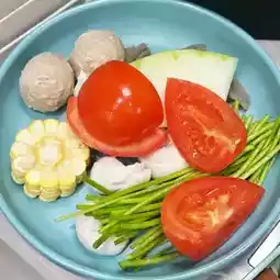 💪 The buffet area has many different 🤤 meatballs and fresh vegetables 🥬, and more complete drinks, as well as 🥃 plum wine and sake 🍶!