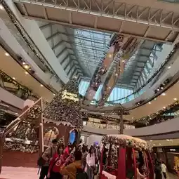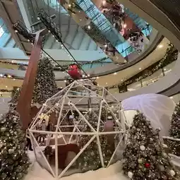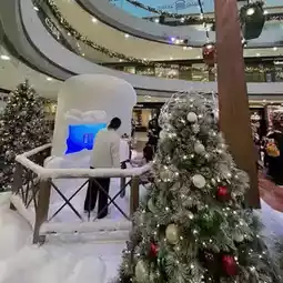 There is a snow mountain cable car 🚡 When people are of course not missing a very tall and big Christmas tree