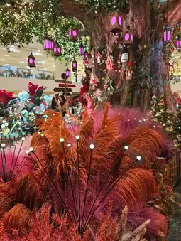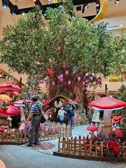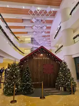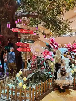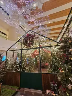 I went to Admiralty Pacific Place earlier to see the Christmas decorations. This year's theme is a fairy tale world, and a huge Christmas wishing tree was placed in the atrium of the shopping mall. It felt like I had walked into a fantasy world, a world of elf forest. Many citizens gathered around to check in. There were giant flowers and glowing mushrooms, and even snowy tree holes. With the sound and lights, it felt magical. On the other side of the square is an ancient garden with many unique features. Next is Santa Claus House, which is designed as a full glass house with glowing lights, creating a very Christmas atmosphere. Unfortunately, we were not able to go in to visit it for the time being. I heard there will be a forest light show and forest gift workshop later, which is exciting.