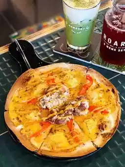 The crispy pizza has a softer heart in the center, with a layer of fluffy mashed potatoes, then spread with semi-melted cheese and sprinkled with cheese sauce, rich in savory milk flavor; each slice also has sweet and juicy crab sticks and sweet pineapple;