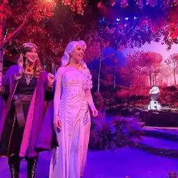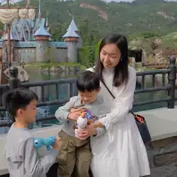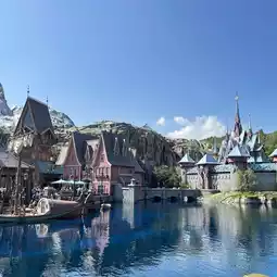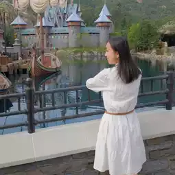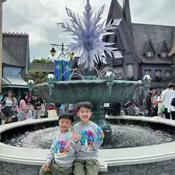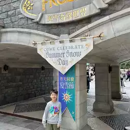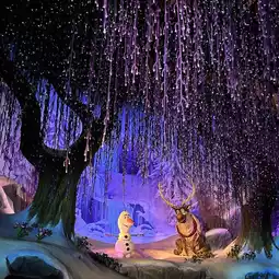 While sitting in a small wooden boat, while listening to the familiar theme song, along the way you will see the main character of "Frozen", the scene is beautiful and real, children will play while singing Let It Go ~ ~ ~