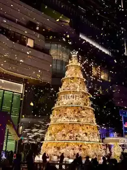 🎄Feature - A giant 15-meter-tall platinum Christmas tree themed after Dior perfume.