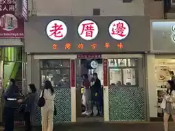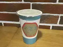 The paper cup is printed with the Taiwanese meaning of the store name "老厝边", which is a little bit of knowledge.