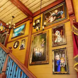 Even if you don't dine here (it's a bit expensive), the details on the restaurant's walls are great to take in. There are palace-style decorations on the wall, as well as paintings of Elsa Anna.