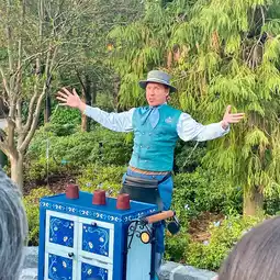 The park is crowded with people, so Disney has designed a lot of performances to entertain everyone, including interactive and fun magic shows, Nordic folk music, and talking stone elves.