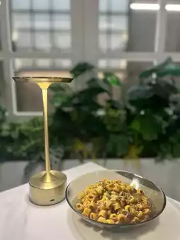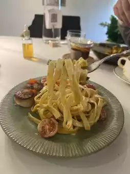 The environment of this restaurant is really beautiful, and it is very big, perfect for taking pictures. The quality of the food is very high, especially the handmade pasta from his place, which is really delicious.