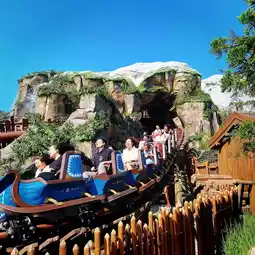 #香港必去打签点 "Magic Snow Fantasy Journey" is naturally the focus of Disney's new park, but "Snow Ridge Sled" is also a very elaborate amusement facility! The "Sled" should be described as a family-style outdoor roller coaster, and it is also a great experience to enjoy the panoramic view of the park from a high altitude, as well as the snow-capped mountains and lake views from a close distance.