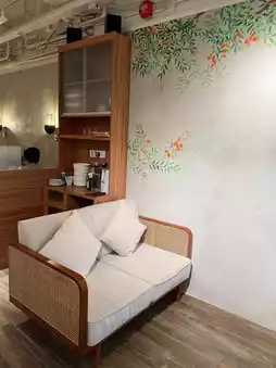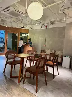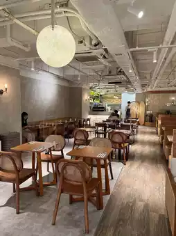 Find a quiet space in the busy city. The restaurant is decorated in a wooden style, the dining table is mainly wooden tables and stools, and there are some cafeterias and a glass room.