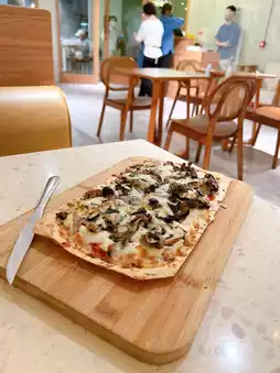 The package includes bread and mixed vegetable soup and dessert. These three are very tasty. The garlic bun is crispy and full of garlic sauce.