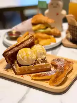 Freshly baked and hot 😍 The waffle is crispy on the outside, crispy on the outside and soft on the inside! Add vanilla ice cream, hot and cold blend, super good 🥰 caramel bananas are very tasty 🫶🏼 highly recommended 🥳