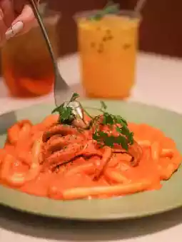 The big octopus is very eye-catching 😍 The taste is soft and bouncy, and the year cake is thinner than usual, smoky and tough, dipped in rose sauce to eat a little spicy very tasty 👍🏻
