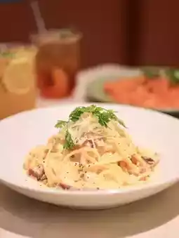 The carbonara pasta is rich and creamy, the black hair pork salty flavor is prominent and oily, plenty of portion☺️